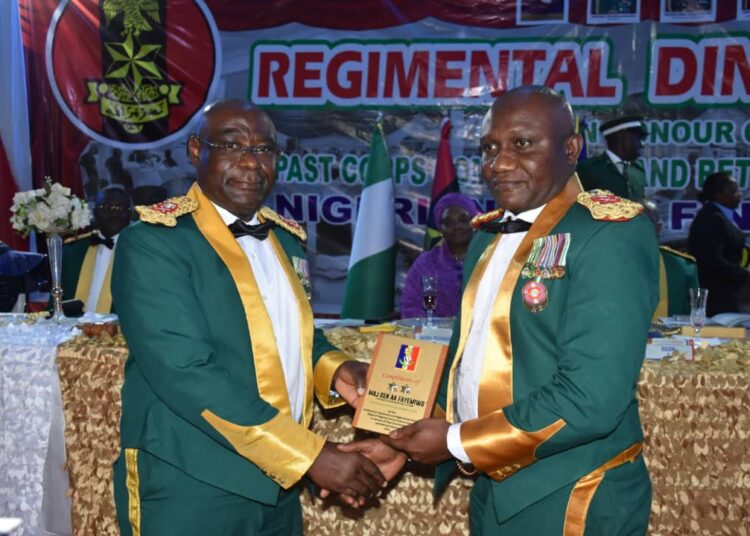 When welcoming distinguished guests and the retired senior officers earlier, Army Major General Adetokunbo, the Chief of Account and Budget, announced that 23 senior officers, including 6 Major Generals and 17 Brigadier Generals, were being honored. He said that the purpose of the Regimental Dinner Night was to honor the most worthy senior officers who had retired from the Corps for their service, commitment, and leadership. He pointed out that many of them have continued to provide the Corps with their wealth of knowledge and expertise after retiring, in addition to coaching young officers on the path to a prosperous career.
