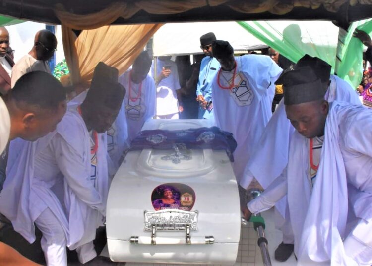 The remains of late Mrs Beatrice Buno Nwoko the mother of Brigadier General Kingsley Nwoko Commander 81 Division Military Intelligence Brigade was buried amidst tributes by the Chief of Defence Staff General Leo Irabor, the General Officer Commanding 81 Division Nigerian Army Major General Obinna Ajunwa and other top military officers as well as family members, friends, Captain of industries, and well wishes at her hometown at Idumuje Ubgoko, Aniocha North in Delta State.
