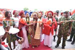 The executive president of the Nigerian Army Wives Association (NAOWA), Mrs. Salamatu F. Yahaya, on Wednesday, October 12, 2022, commissioned a block of classrooms, an ICT Center, and a 500-seater Multipurpose Hall at the NAOWA Model Nursery and Primary School, Ojo, Lagos state.