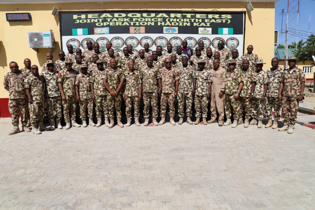 The Theatre Commander (TC) Joint Task Force (JTF) North East (NE) Operation HADIN KAI (OPHK) Major General CG Musa had on Tuesday, 20 December 2022 decorated eight (8) Senior Officers of the Nigerian Army (NA) to the rank of Brigadier Generals. The investiture ceremony took place at Headquarters Theatre Command Officers’ Mess in Maimalari Cantonment, Maiduguri.