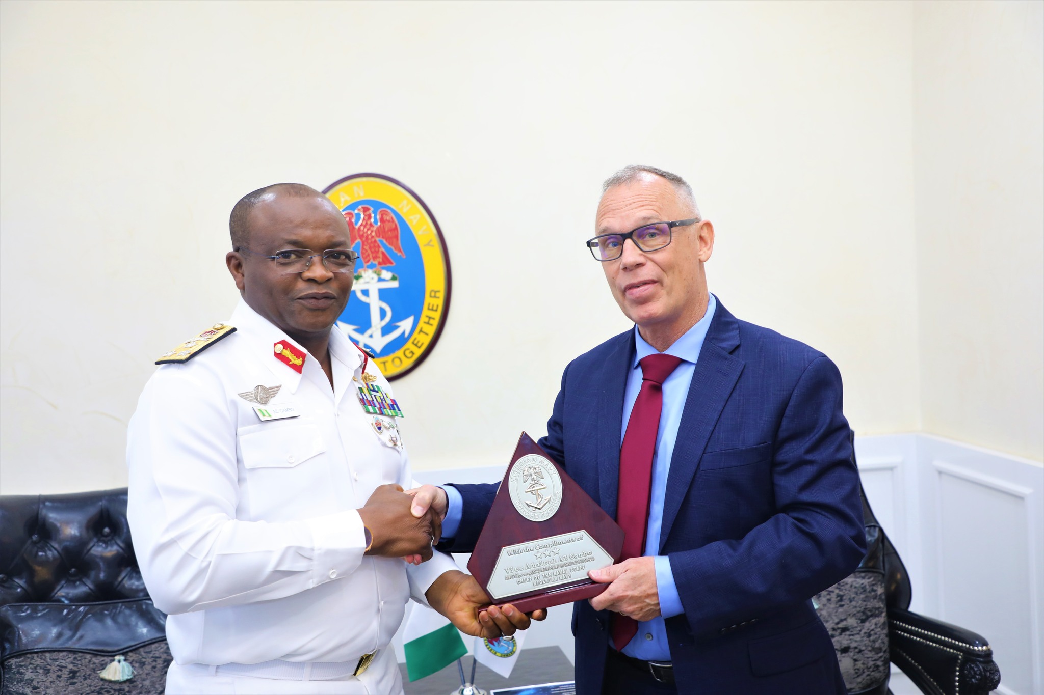 During the visit, Dr. Richard W. Kemp, accompanied by his team, expressed their admiration for the Nigerian Navy’s commitment to maintaining maritime security and protecting Nigeria’s territorial waters.